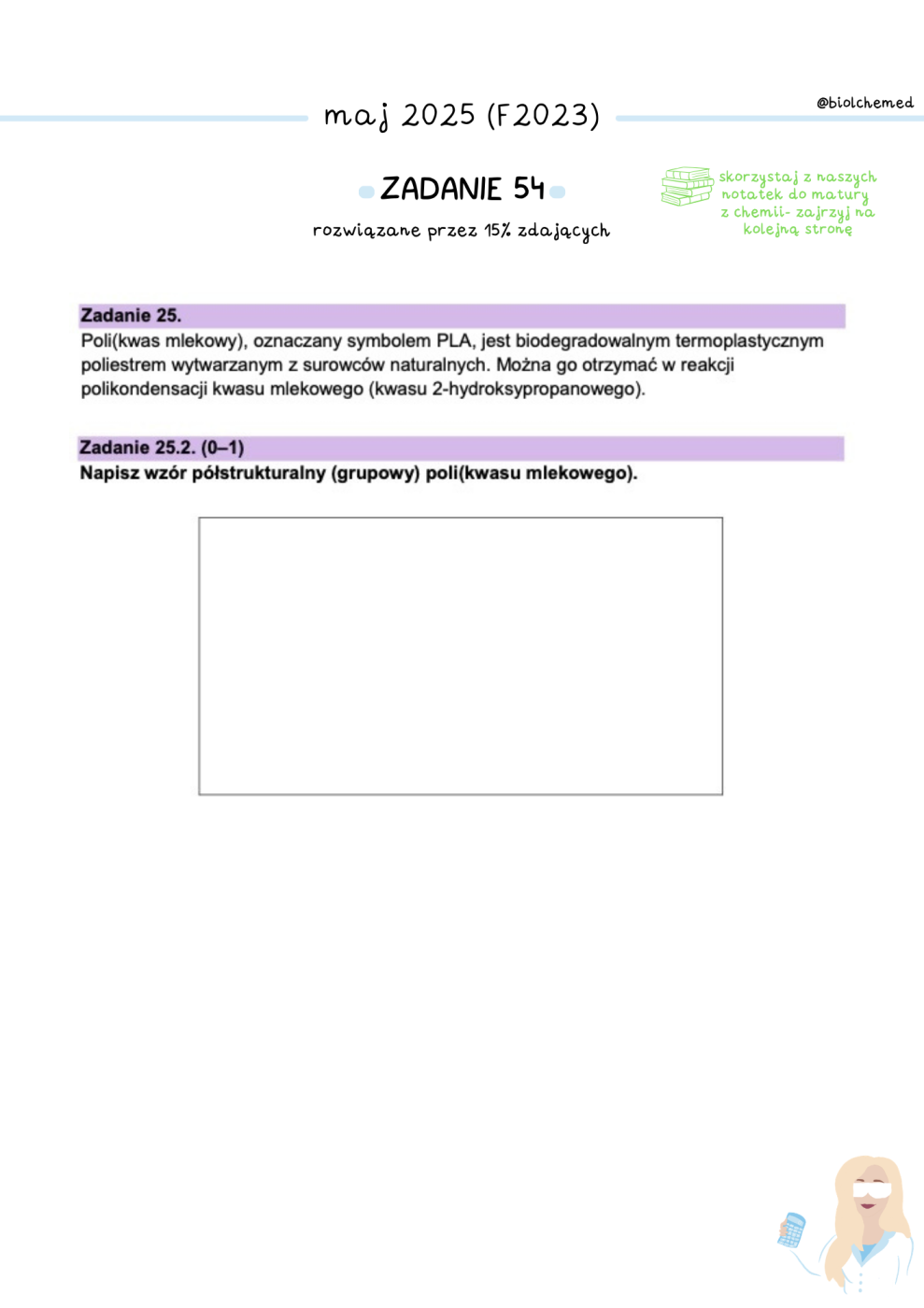 Dla osób chcących osiągnać wysoki wynik z matury z chemii.