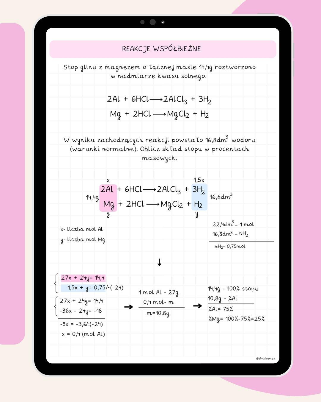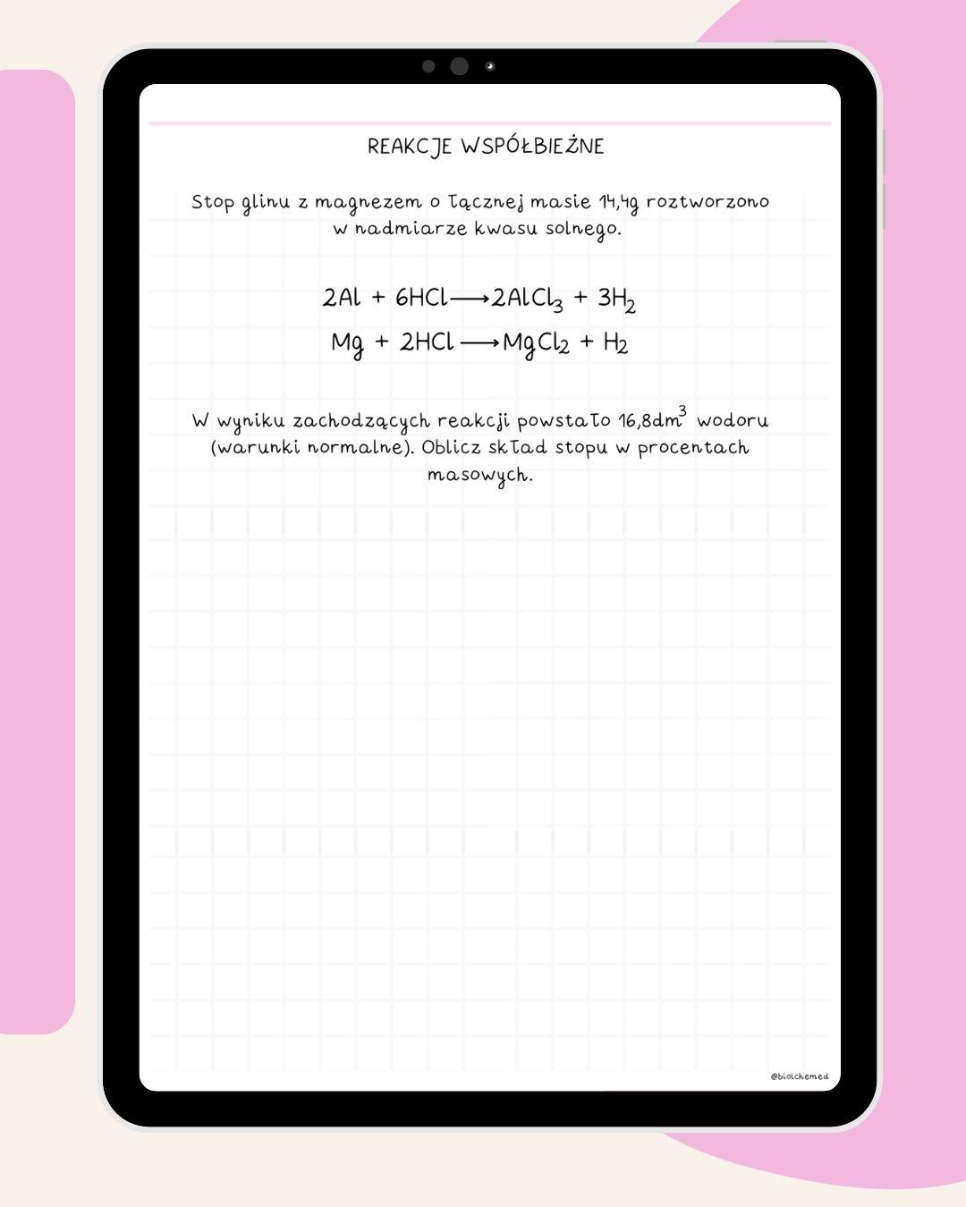 Ta część notatek to ,,samouczek" obliczeń chemicznych, w którym pokazuję Ci jak ogarnąć je od podstaw (takich jak np. przeliczanie liczby moli na masę, objętość itd.) aż do trudniejszych zagadnień, gdzie musisz połączyć wiele umiejętności (np. zadania z przerywaniem mieszaniny po ogrzaniu, reakcje współbieżne, zadania z hydratów i wiele, wiele innych).