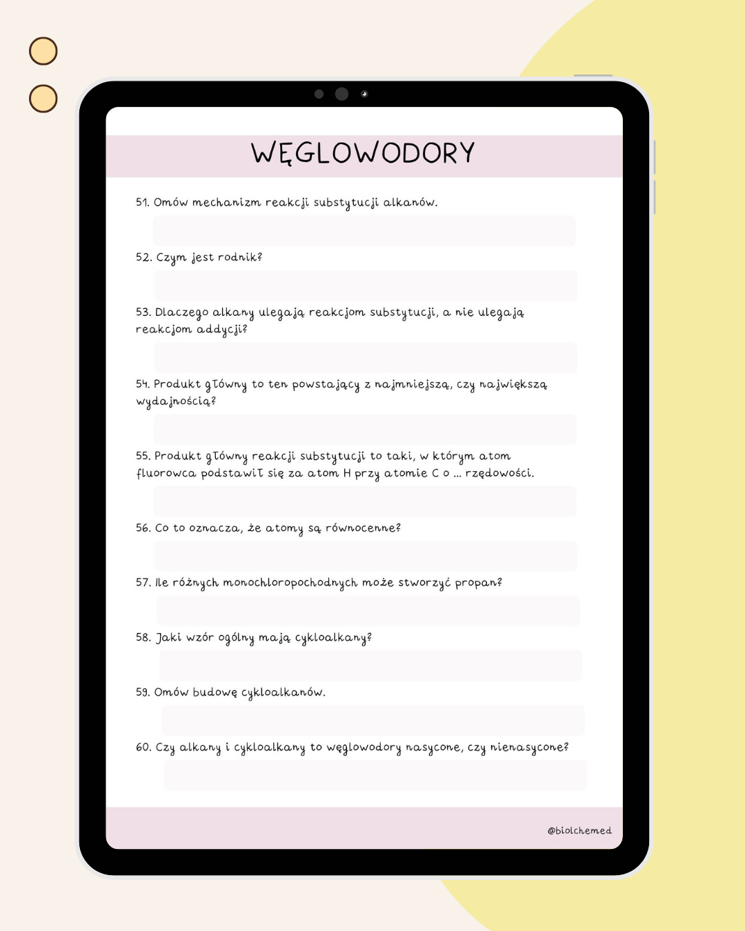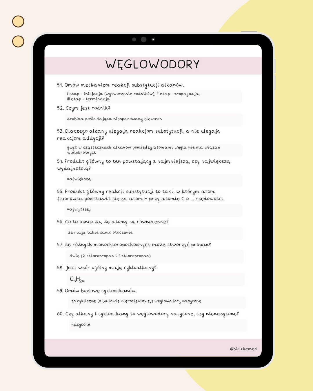Ten zestaw pytań i odpowiedzi został stworzony z myślą o maturzystach przygotowujących się do matury z chemii na poziomie rozszerzonym, którzy chcą uczyć się skutecznie, aktywnie i z głową – bez bezmyślnego czytania notatek.